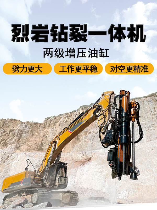 鉆裂一體機(jī)是自主研發(fā)的用于劈裂硬質(zhì)巖石的專用設(shè)備,擁有多項(xiàng)國家專利,鉆裂一體機(jī)與挖機(jī)...