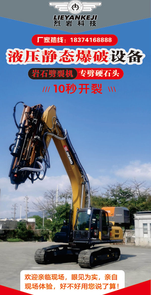 開山遇到石頭太硬 炮捶打不動,炸藥又不讓用,怎么辦呢 ?有臺巖石鉆裂機就輕松解決了! 烈?guī)r...