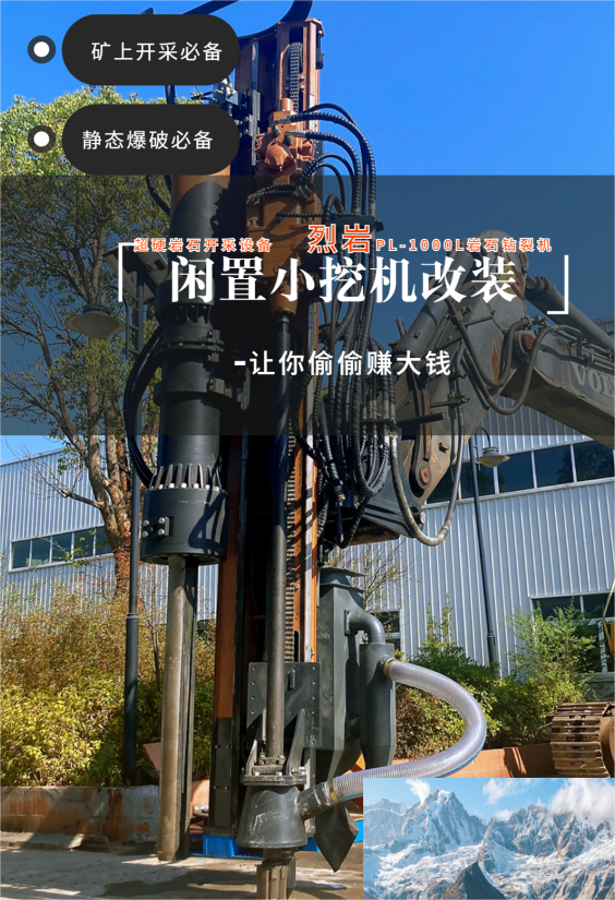 鉆劈一體機(jī)、挖改鉆機(jī)等機(jī)械破碎設(shè)備,集鉆孔、劈裂一體作業(yè),特別合適各種不能用炸藥爆破...